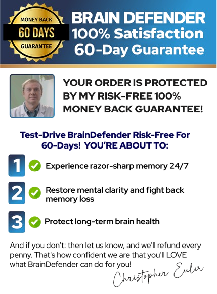 Brain Defender™ comes with a 60-day money-back guarantee. If you’re not completely satisfied with your results, you can return the product within 60 days for a full refund. Please review the terms and conditions to confirm eligibility.